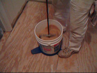 involved with mixing the joint compound in a 5 gallon bucket. The